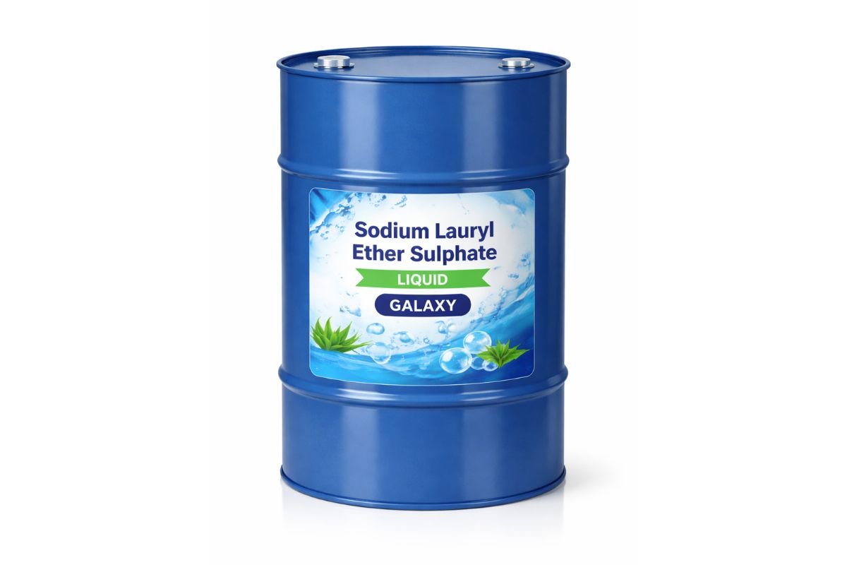 Sodium Lauryl Ether Sulphate (SLES) Liquid is a concentrated anionic surfactant used in personal care products like shampoos, body washes, and hand washes for foaming and cleaning. “Galaxy” likely refers to a specific grade or formulation.